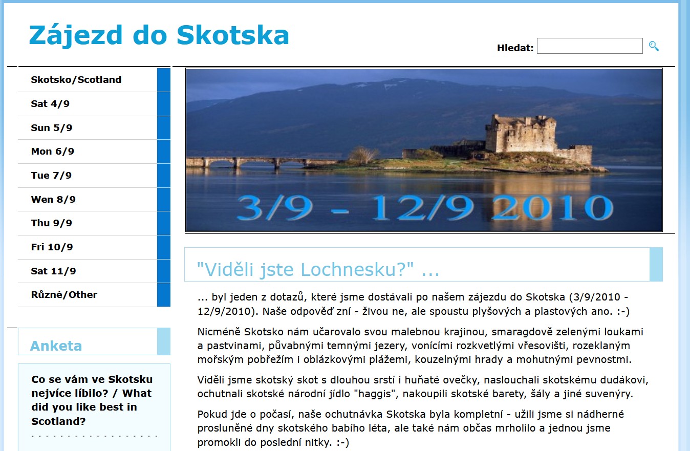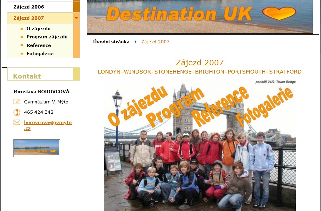 Přehled zájezdů včetně fotografií, webových stránek a prezentací